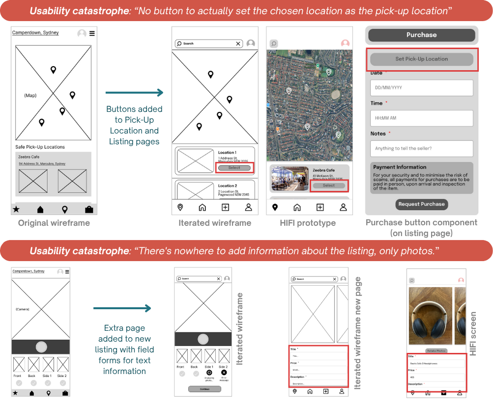 Users were unsure of how to set a location and communicate it with the seller: “Wait, am I meant to click it? Or do I just see where I can pick it up from?”